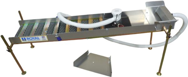 Our Multi-Purpose Recirculating Sluice Box Kit is built around our patented rugged Self – locking sluice box. This is a true Multi-Purpose Machine. The sluice can be used alone, it can be used with our stand that includes adjustable legs to make it easy when leveling out your sluice box in any terrain, add a Header Kit when in still waters or no water (lakes, ponds, slow creeks and rivers, etc.), then it becomes a highbanker. Our kit consists of a Self-Locking Backpacking Sluice Box and Header kit, Sluice stand that breaks down to 24″ with adjustable legs. With the addition of your 30-gallon reservoir and tailing buckets (not included), you can turn this unit into a recirculator. That’s 3 machines for the price of one! Battery not included.